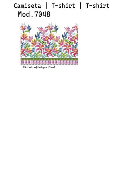 Camiseta mangas caídas fabricada en punto estampado; tejido fluido, elástico y muy cómodo.