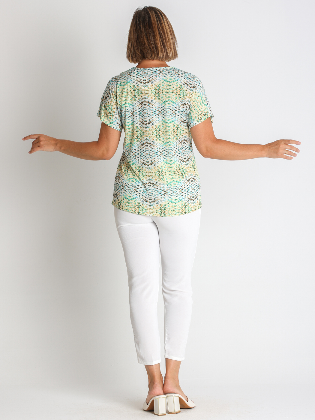Camiseta estampada fabricada en punto. Tejido elástico y muy cómodo.